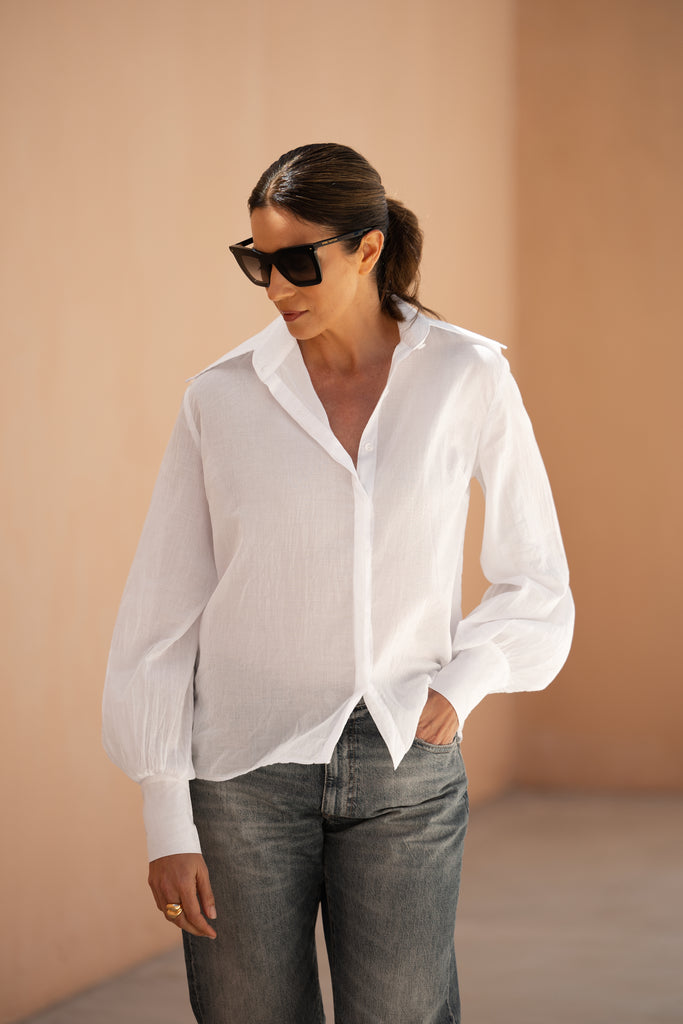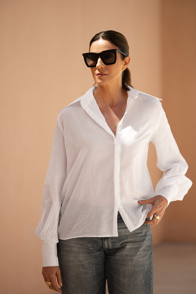 Easy to dress up or down, the Classic Elle Shirt pairs seamlessly with denim for a relaxed everyday look or with tailored pieces for a more polished finish. A true wardrobe essential. Light, breezy, and effortlessly classic.