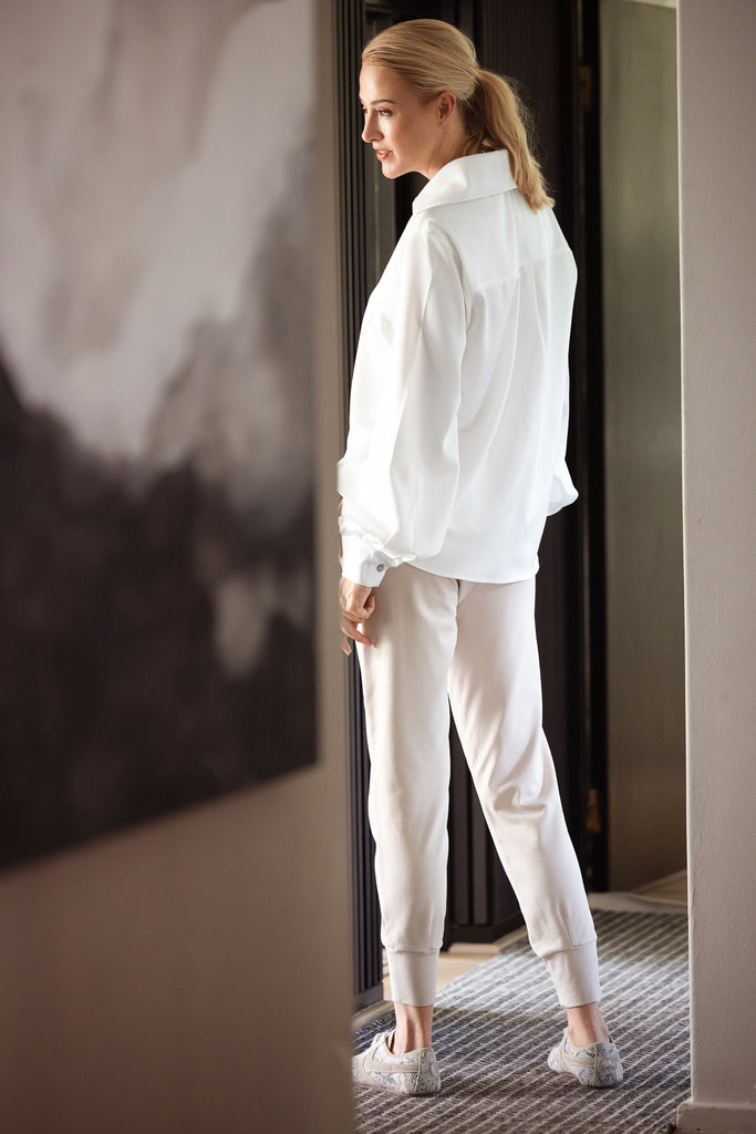 Easy to dress up or down, the Classic Elle Shirt pairs seamlessly with denim for a relaxed everyday look or with tailored pieces for a more polished finish. A true wardrobe essential. Light, breezy, and effortlessly classic.