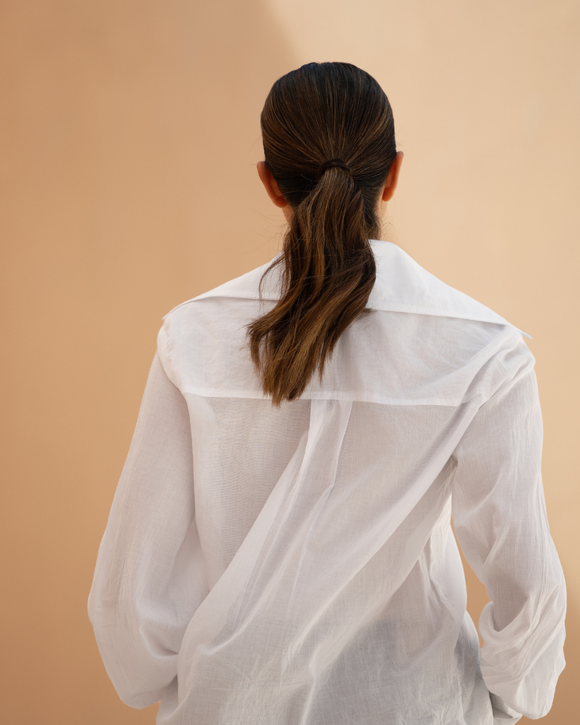 The Classic Elle Shirt is made from ultra-light cotton voile, offering a beautifully soft, airy feel with an effortless drape. Designed to be both timeless and versatile, it features a relaxed yet flattering style that moves easily with the body.