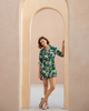 Upgrade your summertime look with this elegant jumpsuit. Boasting three-quarter sleeves and a collared V-neckline, it also features a high-waisted drawcord for a customizable, flattering fit. The loose, relaxed silhouette adds both fashion and comfort to your wardrobe.
