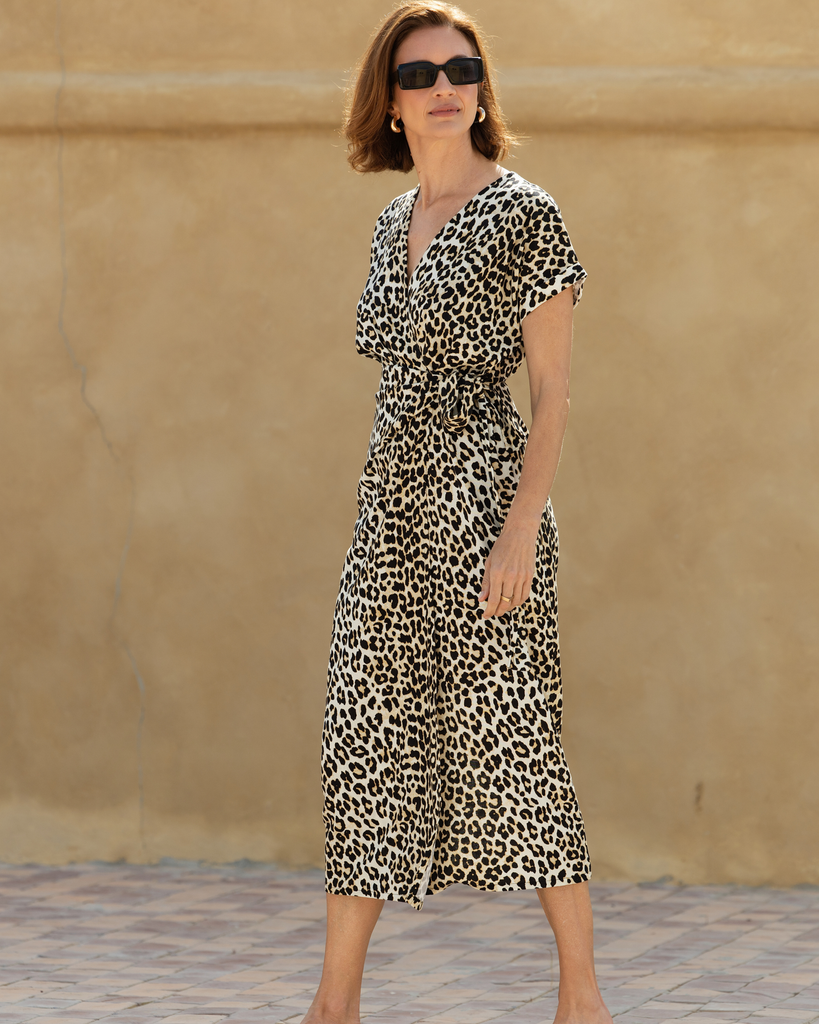 Designed with a flattering wrap silhouette, the dress ties at the waist to create a feminine shape that suits every body. The lightweight fabric drapes effortlessly, offering comfort, ease of wear and a flowing, elegant feel.