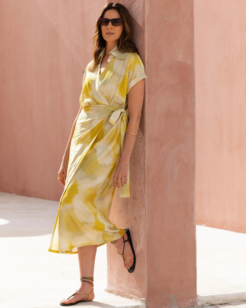 Escape to the sun-drenched shores of Greece in our Yvonne Wrap Dress, designed to transport you to the heart of fashion.